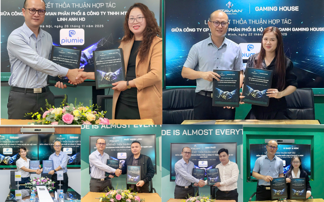 Ngày 22/12/2025, công ty Cổ phần Stavian Phân phối đã chính thức thực hiện Lễ ký kết hợp tác chiến lược cho thương hiệu Piumie cùng các đối tác: Công ty Chip Baby, Đại lý Hi Baby & Mom, Đại lý Tiệm Nhà Gấu và Đại lý Ruby Ngô. Sự kiện đánh dấu bước tiến quan trọng...
